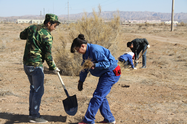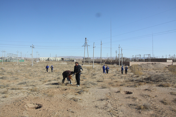 从3月29日开始,公司在新建精盐分厂西南周边及甘家井沿路一带开展了义务栽植梭梭活动,由此拉开了雅盐春季封沙育林、保护盐湖、促进天然植被恢复生机的序幕。此次活动共有100多人参与,实行各单位分片负责种植,任务到人的方式,共栽植梭梭1000亩。 近年来,公司每年开展种植梭梭、红柳、树木等工作,已逐步形成一道防风固沙屏障,有效地减轻了风沙对当地职工群众生产、生活的侵害,保护了我们赖以生存的盐湖。 |