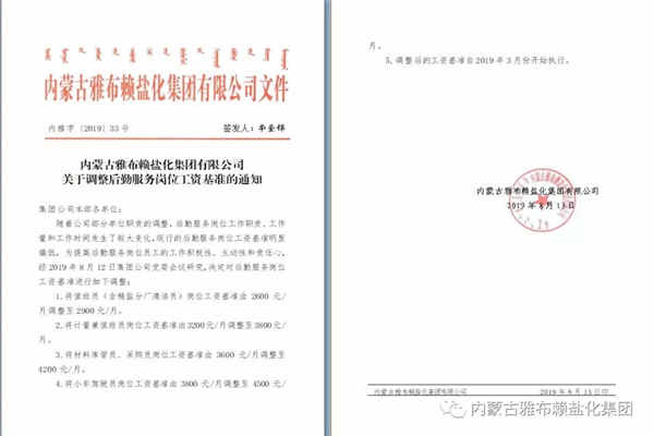按照“守初心,担使命、找差距、抓落实”的总要求,坚持边学边查边改,聚焦职工关心关注的切身利益问题,立行立改,让职工群众感受到了实实在在的效果和变化。 在此次主题教育中,公司党委通过“开门纳谏”共征集职工群众意见建议10条,其中有4条直接涉及职工自身利益,比如“公司生产一线职工、部分辅助岗位职工工资偏低,要求适当增加工资;恢复自营人员“五险一金”及相关福利待遇等”。对于职工的诉求意愿,公司党委高度重视,在主题教育开展伊始,就将其摆上议事日程,召开专题会议进行研究,最终决定为司磅、稽查工作人员、值班人员、小车司机、库管员等每月增加400-700元不等的工资,并从2019年3月份开始补发;同时恢复自营员工部分待遇,包括住房公积金、生育保险、工伤保险、防暑费、劳保待遇;另外,通过在采盐、精盐分厂实施阶梯单价,增加了一线员工的工资待遇;国庆前夕,公司工会还按照人均600元的标准,为职工发放福利,以看得见、摸得着的实惠,切实增加了职工的获得感、幸福感、安全感,使主题教育取得了实实在在的成效。