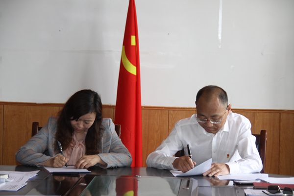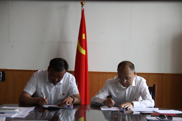 首先,由集团公司董事长孙刚德分别与总经理李奎锦、副总经理徐宪国、工会主席张菊萍签订了《党建、党风廉政建设、意识形态及群团建设责任目标协议书》。然后由董事长分别与总经理、工会主席签订了《经济责任目标协议书》;总经理李奎锦分别与副总经理和分管单位市场营销部、财务部、企业管理部、综合办公室负责人签订了《经济责任目标协议书》、《安全生产责任目标协议》、与雅布赖染料公司签订《安全生产责任目标协议》;副总经理徐宪国分别与采盐分厂、精盐分厂、生产技术部负责人签订了《经济责任目标协议书》、《安全生产责任目标协议》。