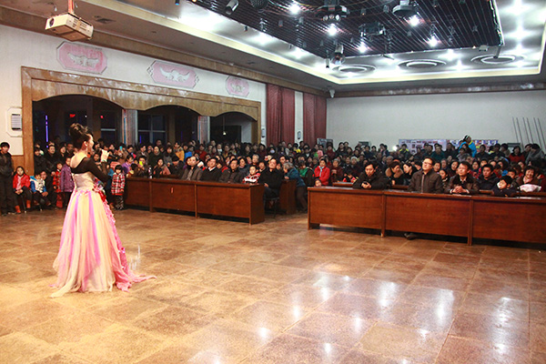214日晚八点,元宵晚会拉开帷幕,集团公司领导与几百名职工、群众共度团圆之夜。
